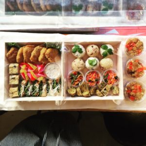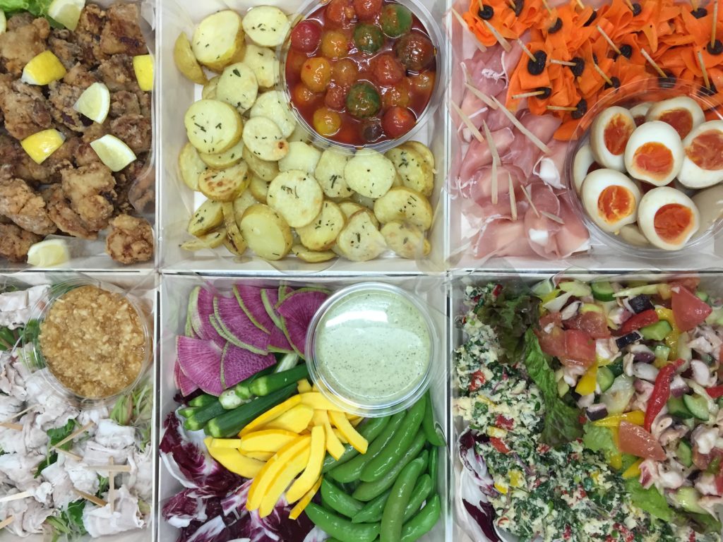 手毬おむすび3種/メイン2〜3種類/野菜を使ったお惣菜7種類〜の少し豪華なお弁当です。